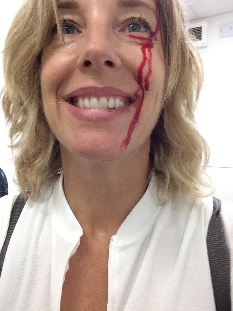 My front wheel rejected the command to go up the curb, instead slamming into it and turning parallel to my line of travel. I was pitched forward and went down hard, seeming to meet the pavement in fast and slow increments as I felt my helmet smash hard on the ground and then felt my actual head meet the pavement. Which wasn’t supposed to happen, I thought in the moment. My left side in general hit quickly after that. Get the bike off the road. Get out of the way. I scrambled up and dragged my bike onto the sidewalk, surprised to see blood running everywhere. It was in my eye and dripping onto the ground, on my bike. “Are you ok? Oh no, sit down, you’re bleeding everywhere. You’ve hit your head’. People materialized and were telling me I was hurt. “I’m fine”, I said several times. Was I hurt? I hurt, but…I took inventory: left hand shredded and bloody (no gloves on), head hurt – keep an eye out for signs of concussion – but not cracked. My left shoulder was pretty sore, but operable so nothing broken. Left leg bloody and missing flesh at the side of my knee, scraped elbow. Everything else felt intact. “Where’re you from, luv?” asked the woman. “California.” I replied, noticing that taking felt a little odd. “California?!” They both exclaimed, “what’re you doing here, luv?” asked the woman incredulously. “Riding my bike. I’m going to Newbury”. “Newbury?? Why on earth…We’ll, you’re not going to Newbury now!” she exclaimed. “Come over here to the petrol station – let’s get some help”. “I’m fine,” I repeated, embarrassed at the fuss being made by strangers who felt the need to help. I imagined my crash had been a bit of a visual treat. “Why don’t you come over to my bit then luv – I’ll make you a cup of tea and you can get yourself sorted”, the woman was saying. I looked at her for the first time. She was missing two teeth in front had some bad tattoos. In other circumstances she might be someone to be wary of. But she was concerned, and true kindness showed in her eyes. The man who was there was grappling with my bike – the handlebars now faced a new direction – and we walked a few yards away from the street toward the petrol station. “Why don’t we go in and see what they have in their medical kit that can help” said the woman, indicating the shop. “We can have my daughter watch your bike”. I assessed the situation – was this a setup to take my shit? The man wasn’t with her, he’d been driving and pulled over when he saw me go down. “I’ve got your bike”, he said. Then he said, “I’m going by Newbury – on my way to Swindon. I could drop you there”. Blood continued to run down my face as I tried to this in. It was all so strange. “Let’s get you sorted” said the woman, taking charge again and leading me into the convenience store. People swung their heads as we entered – Jesus, I was feeling like a side show. “Oy – where’s your medical kit?” I stood at the counter with my new friend while the manager scrambled madly to find his first aid kit. I felt like we were holding up the store. He handed over the entire box to the woman and suggested it might be best to go to the toilets to deal with my wounds. He pointed. I went. I set my helmet down and looked in the mirror. Ugh. I turned the water on and stuck my grated hand under the tap. Better to do it now while I couldn’t feel as much – it would only hurt more later I thought, wincing. The water ran red and then I could see my hand better. It was raw and shredded. I washed it hard to get any grit out. I selected some toilet paper and wet it and wiped my face. There were two small cuts at my temple. I blotted them and they stopped bleeding. I cleaned the blood off the rest of my face. The woman, whose name was Sara, came into the toilet. “Oh, that’s much better! You don’t look half as bad now!” We walked outside and there was the man with my bike. “So, would you like a ride to Newbury then?” he asked and pointed to his work truck. “I can put the bike in the back”. I hesitated – again, this was so surreal. How was it that he even had a truck for my bike? I looked at him. He had a kind expression, but so did Bundy. I didn’t feel threatened, but I was shaken so maybe my instinct wasn’t working properly. The woman chimed in with her opinion that this would be perfect, and while I couldn’t say she was a great judge of character, I decided that yes, I would take his offer. There was something bigger at work it seemed, and I needed to go with the bigger plan at hand.