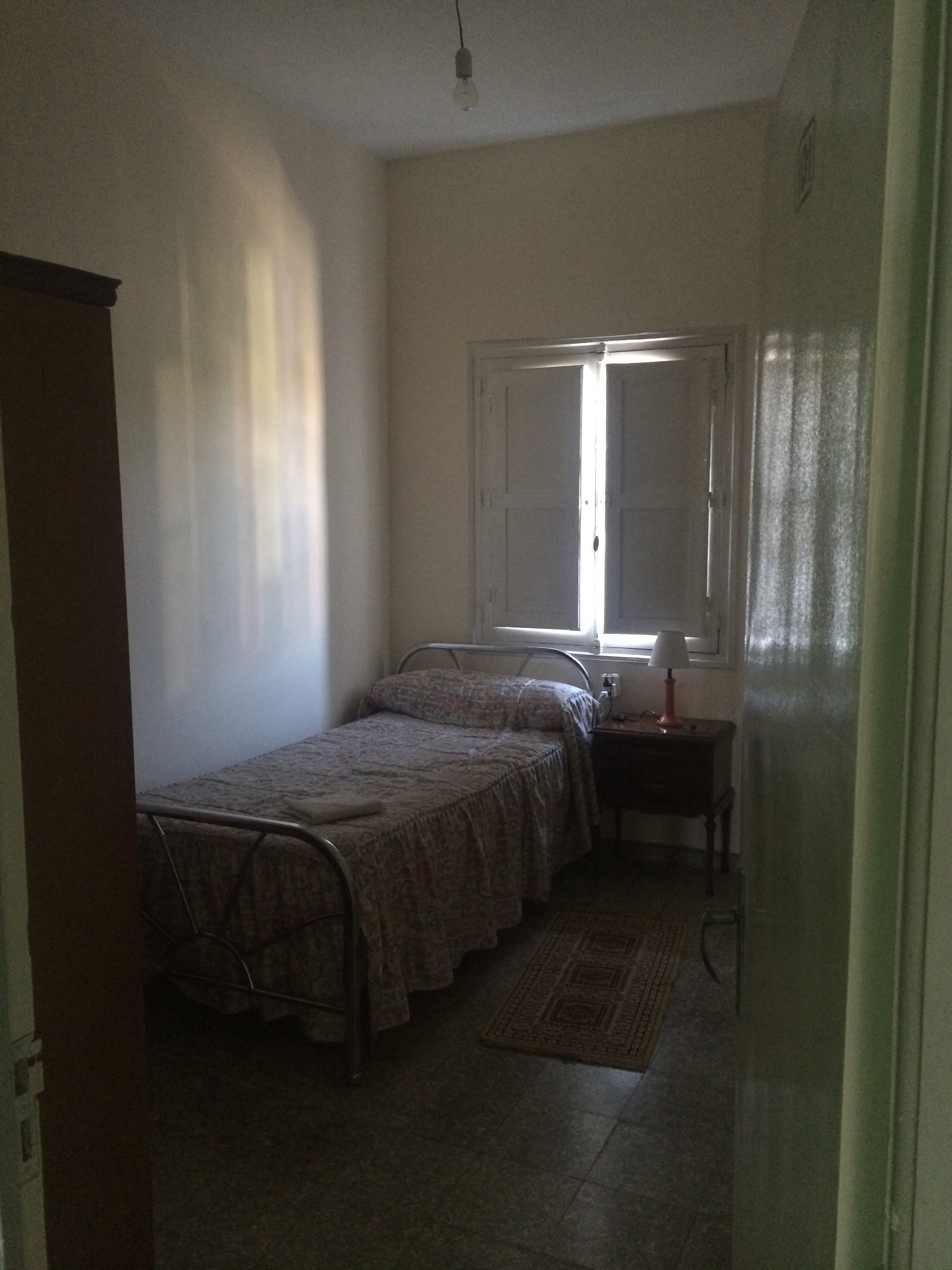 I checked into my room – the bartender opened a door behind the bar and called to someone. His wife came in and asked me for my passport. I didn’t bother asking to see the room as I wasn’t going to say no. The wife wrote down all my info for the government and handed my passport back. I would pay tomorrow. She rooted through a drawer and pulled out a set of keys, motioning me to follow her through a corridor past the bathrooms and through the Comedor – dining room – and although still set up as one, probably not used for years. All of these roadside hotels had a similar set up, and all the dining rooms seemed redundant and infrequently used. “Cuidad”, she cautioned as we turned a corner and were faced with steep stairs that would never have passed inspection in the US. I groaned as I took the first few steps with my panniers in hand, wondering why Spaniards, who seemed to be typically much shorter than me, would opt for stairs with nine inch risers. The wife stopped at the first room, opening the door to reveal a large bed in a small room with the usual dire conditions of decor, including a bare bulb lamp on the one night table. Sweet room, I’ll take it, I thought. She opened the bathroom door to show me the shower but the angle was awkward and I simply nodded and thanked her. She handed me the keys and departed. Well, I had a room. It wasn’t the same value for money as others, but under the circumstances it was a pretty good deal. I badly wanted a shower, so unpacked what I needed and opened the bathroom door. Shit. A bath with no curtain and a handheld shower head. Sigh. I turned the water on and the shower head became a writhing serpent, spraying its venom all around the tiled bathroom. Shit!! I tried to get the water under control but found the water pressure so high it actually wasn’t possible to use the hand held, – oh well – bath it is! Once cleaner, I pulled the quilt and coverlet off the bed after clearing the cobwebs from the room and laid down to rest. It was 5pm – hot, and time to take advantage of quiet horizontal space. I slipped into a semi doze.