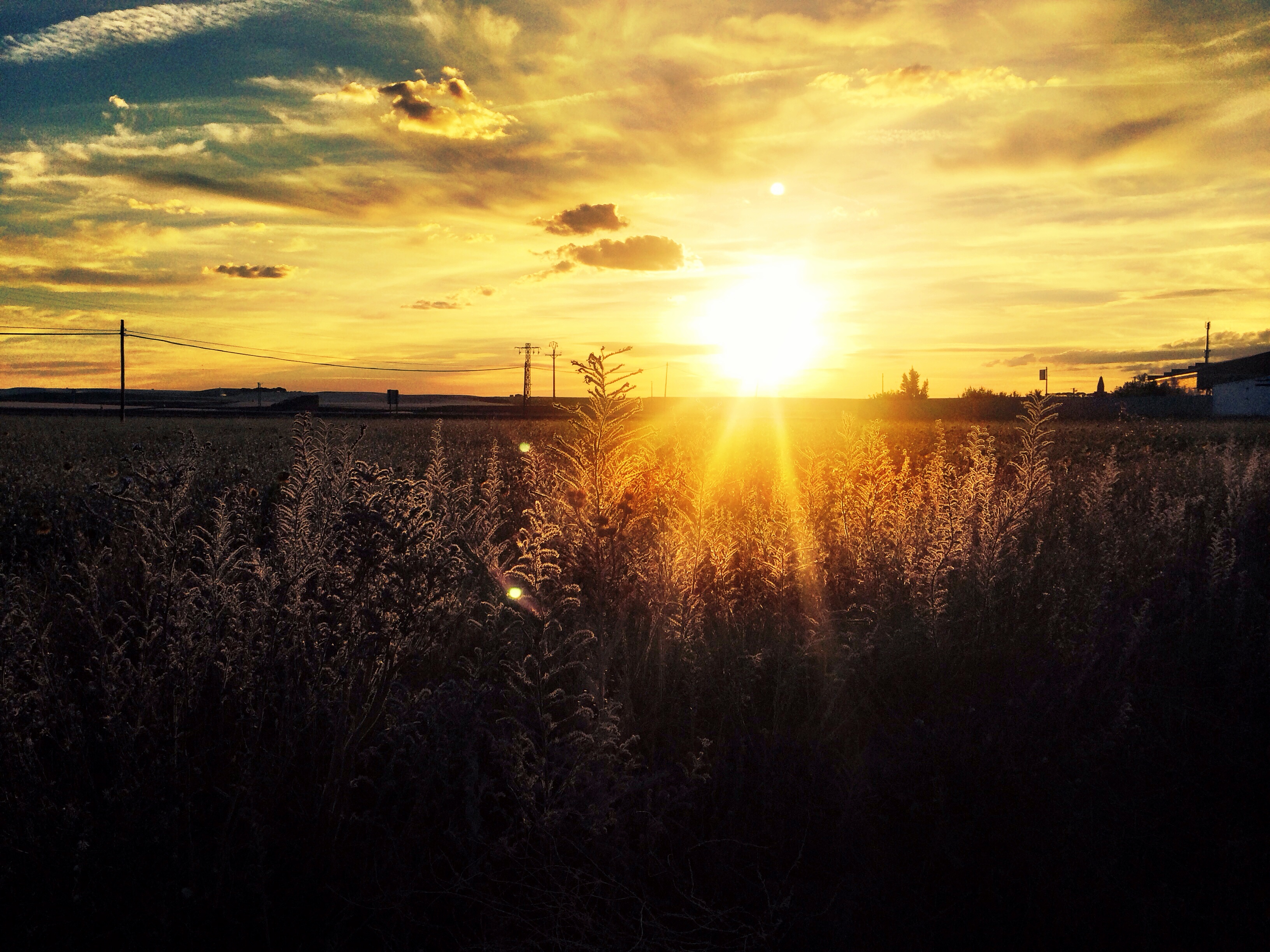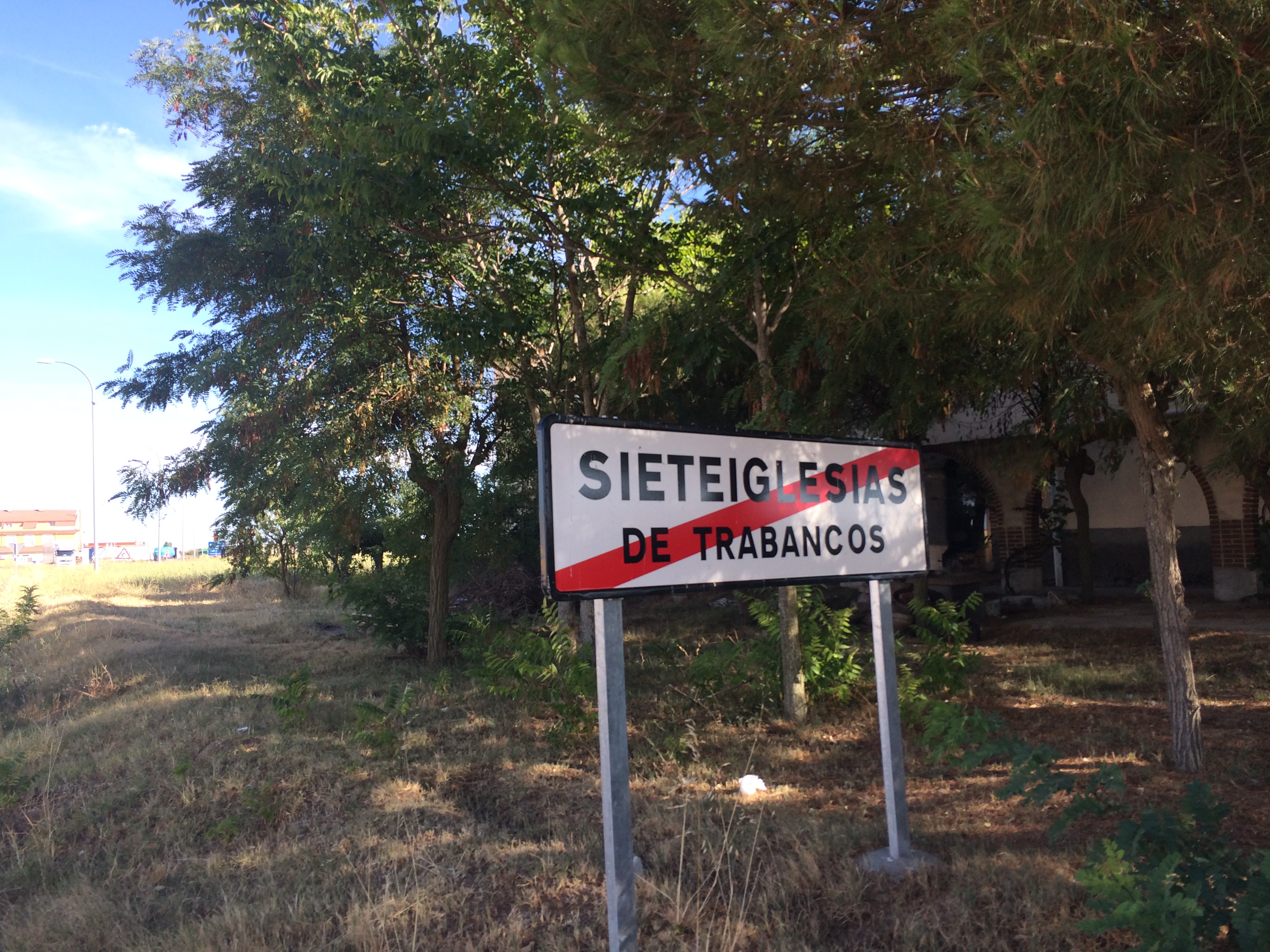 It was 7:30 and I needed food and, based on the state of the Comedor, I didn’t think it was going to happen here. Downstairs, the three patrons of the bar were mesmerized by a John Wayne film on the television – it was funny how attentive they were, like they were in a theater. Perhaps they didn’t have a tv at home. I went through the bar and outside where the sun was shining low and hot in the early evening sky. The only evident eating establishment in Siete Iglesias wasn’t in Siete Iglesias, but at the modern hotel by the gas station, so I headed there. IMG_2135I ordered the house tinto – not bad, better than I expected – and croquettes. They had wifi so I composed a post about my day and attached a picture of the sign to the tire service and my hotel. I think it conveyed the highlights of my day. I read my book on my phone, had another glass of tinto and a beicon y queso bocadillo and then an ice cream. I paid up and walked back to my digs, where I sought out the mechanico. He showed me what he’d done and told me my new tire was a Michelin and ‘bueno para mucho kilometros’. It was a road slick. Crap. I didn’t let my dismay show, and after all I was going to be on asphalt for the remaining kilometros anyway. Hopefully dry asphalt. Maybe I could Ebay it when I got home. The bill was €50. It was a lot, but any less and he’d have been out of pocket. I tried to ask if he was accounting for his trips to find the tire and he understood and said, “Si, complete”. Ok, no guilt. He did not take credit cards and I did not have enough cash to cover the bill, so we agreed that he could take me to a bancomat a la mañana. Perfecto. IMG_2220And now I am in my room – looking through my window, beautiful sunset happened 15 mins ago as I walked back.